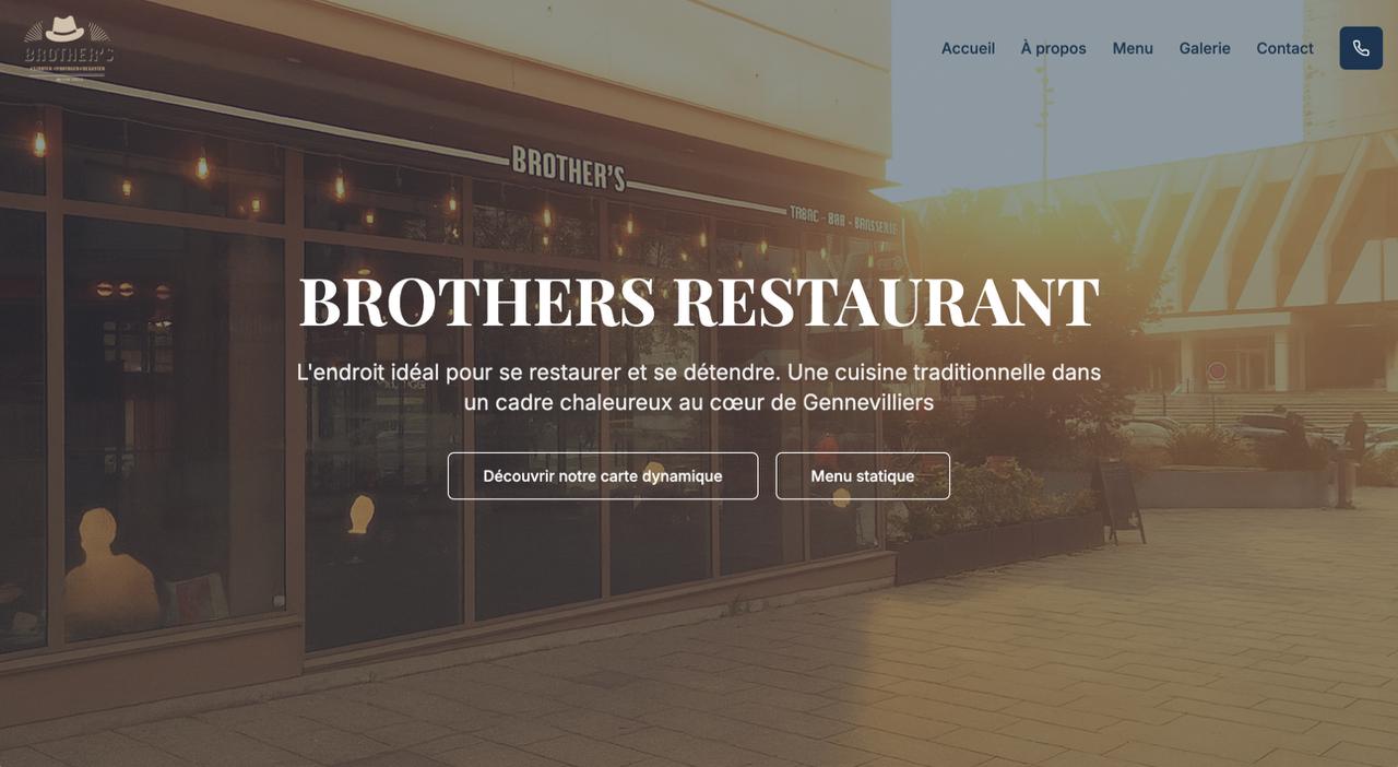 Site vitrine moderne pour un restaurant au cœur de Gennevilliers. Carte dynamique, galerie photo et prise de contact directe.